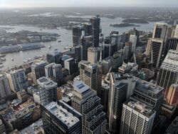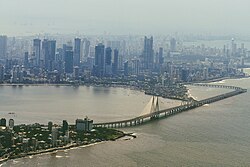 The CBD of Mumbai viewed from the Arabian Sea. Also seen is the Bandra - Worli Sea Link.Sydney's northern CBD serves as the financial and banking hub of the city.