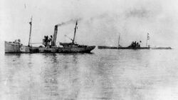 Ship W2 and SM U-28 during the seizure of SS Batavier V on 16 March 1915