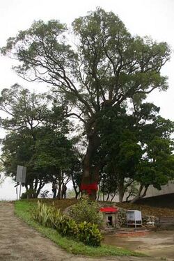 [130] A 330 year old camphor tree and a temple in Hsinchu County are located on the main route of the THSR, and both of them faced removal because of railway construction. The temple established beside the old tree serves as a major religious site for the local community. In 1998, THSRC adjusted the line and design to keep the tree and temple in their original place and cooperated with the local government and people to protect the old tree and the temple until today. Afterwards, together with the local government, the Environment and the Resources Protection Committee, and cultural and historical authorities, THSRC drafted the Hsinchu Old Camphor Tree Medical Plan, which called for the repair of decayed branches as well as measures designed to maintain the long-term growth and the health of the tree.[130][131]