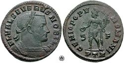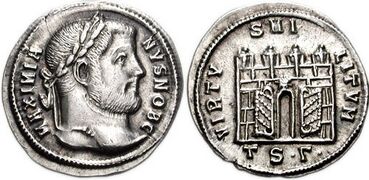In 306, Constantius Chlorus (r. 293–306), the western Augustus, died at Eboracum (present-day York, England ),[5] and his soldiers acclaimed his son Constantine the Great (r. 306-337) as his successor.[6] However, Galerius, the Augustus in the East (r. 293–311) elevates Severus II (r. 305–307) to the position of Augustus, since by the arrangement of the prevailing Tetrarchy, being the western Caesar, he was to succeed the dead Augustus. After some diplomatic discussions, Galerius relegated Constantine to the position of Caesar, which he accepted, thus allowing Severus to assume his position.[7]