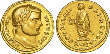Aureus of Maximian (r. 285–308; 310) issued at Antioch c. 294–295