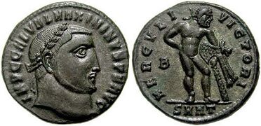 Since 293, the Roman Empire had been governed by four emperors, a set of an Augustus (senior emperor) and a Caesar (junior emperor) for each of the western and eastern portions. On May 1, 305, the augusti Diocletian (r. 284-305) and Maximian (r. 285–308; 310) voluntarily abdicated and their caesares Constantius Chlorus (r. 293–306) and Galerius (r. 293–311) were elevated to the western and eastern augustal position respectively,[1] while Severus II (r. 305–307) and Maximinus Daza (r. 305–313) would become the western and eastern Caesars, respectively.[2][3][4]