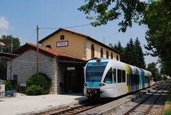 Tripoli is served by the metre gauge railway line from Corinth to Kalamata of the Hellenic Railways Organisation (OSE). The line was renovated and passenger services to Árgos and Corinth, which had been suspended for a few years, were reinstated in 2009. However, in December 2010 services ceased again due to the general suspension of railway services in the Peloponnese.