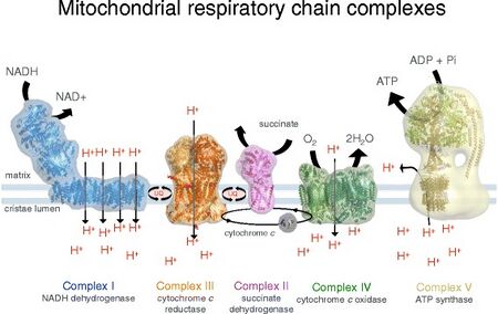 ↑ 40.040.140.240.3"The function of the respiratory supercomplexes: the plasticity model". Biochimica et Biophysica Acta (BBA) - Bioenergetics1837 (4): 444–50. April 2014. doi:10.1016/j.bbabio.2013.12.009. PMID 24368156.