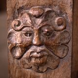 Detail of a "disgorging" medieval misericord in Ludlow parish church, Shropshire.