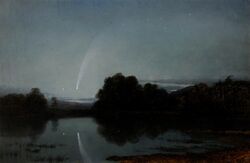 Donati's Comet appears as a streak and star in the early evening sky of a painting by William Dyce, Pegwell Bay, Kent – a Recollection of October 5th 1858.[14] It was featured in a number of sketches and at least one painting by William Turner of Oxford, and in a painting, "The Comet of 1858, as seen from the Heights of Dartmoor", by Samuel Palmer. The Comet at Yell'ham, a 1902 poem by Thomas Hardy, was inspired by his recollections of Donati's Comet.[15]