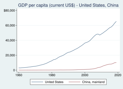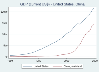 China challenging the United States for global dominance constitutes a core issue in the debate over the American decline.[34][35][36]