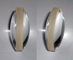 Toric or sphero-cylindrical lenses have surfaces with two different radii of curvature in two orthogonal planes. They have a different focal power in different meridians. This forms an astigmatic lens. An example is eyeglass lenses that are used to correct astigmatism in someone's eye.