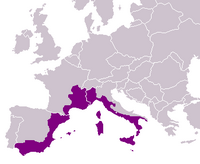 From Handwiki Latin Arch or Latin Arc (French, Occitan: Arc latin; Catalan: Arc Llatí; Italian, Spanish, Portuguese, Galician: Arco Latino) is a name coined for the littoral around the northwestern Mediterranean Basin, which stretches from the bottom of the Italian Peninsula at Malta, along the eastern coast of Sicily, the west Italian coast, Southern France, the eastern Spain coast, finishing at Gibraltar, encapsulating the Balearic Islands, Corsica, and Sardinia.[1] This forms the shape of an arch, and seen as the core of Latin Europe.