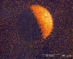 According to NASA,[4] the Roentgensatellit (ROSAT) was a joint German, U.S. and British X-ray astrophysics project. ROSAT carried a German-built imaging X-ray Telescope (XRT) with three focal plane instruments: two German Position Sensitive Proportional Counters (PSPC) and the US-supplied High Resolution Imager (HRI). The X-ray mirror assembly was a grazing incidence four-fold nested Wolter I telescope with an 84-cm diameter aperture and 240-cm focal length. The angular resolution was less than 5 arcsecond at half energy width (the "angle within which half of the electromagnetic radiation"[5] is focused). The XRT assembly was sensitive to X-rays between 0.1 and 2 keV (one thousand Electronvolt).