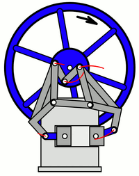 Another early opposed piston car engine was in the Scottish Arrol-Johnston car, which appears to have been first installed in their 10 hp buckboard c1900. The engine was described and illustrated in some detail in the account of their 12-15 hp car exhibited at the 1905 Olympia Motor-Show.[16][17] The engine was a four-stroke with two cylinders (with opposed pistons in each) with the crankshaft underneath and the pistons connected by lever arms to the two-throw crankshaft.