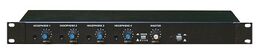 Distribution headphone amplifiers are specialized headphone amps allowing a single signal to be fed to multiple headsets or multiple groups of multiple headsets at the same time. Many distribution headphone amps, like the one shown here, can be cascaded by connecting the audio input of one of the amps to the cascading output, marked "THRU", of another amp.