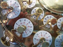 Detail of an early calculating machine invented by Didier Roth around 1840. This machine is a direct descendant of Pascal's calculator. |