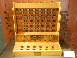 Charles Babbage designed two new kinds of mechanical calculators, which were so big that they required the power of a steam engine to operate, and that were too sophisticated to be built in his lifetime. The first one was an automatic mechanical calculator, his difference engine, which could automatically compute and print mathematical tables. In 1855, Georg Scheutz became the first of a handful of designers to succeed at building a smaller and simpler model of his difference engine.[11] The second one was a programmable mechanical calculator, his analytical engine, which Babbage started to design in 1834; "in less than two years he had sketched out many of the salient features of the modern computer. A crucial step was the adoption of a punched card system derived from the Jacquard loom"[12] making it infinitely programmable.[13] In 1937, Howard Aiken convinced IBM to design and build the ASCC/Mark I, the first machine of its kind, based on the architecture of the analytical engine;[14] when the machine was finished some hailed it as "Babbage's dream come true".[15]