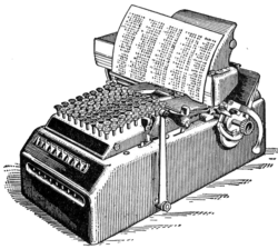 The cash register, invented by the American saloonkeeper James Ritty in 1879, addressed the old problems of disorganization and dishonesty in business transactions.[74] It was a pure adding machine coupled with a printer, a bell and a two-sided display that showed the paying party and the store owner, if he wanted to, the amount of money exchanged for the current transaction.