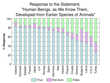 Any such debate is universally considered religious, not scientific, by professional scientific organizations worldwide: in the scientific community, evolution is accepted as fact,[1] and efforts to sustain the traditional view are universally regarded as pseudoscience.[2][3][4] While the controversy has a long history,[5][6] today it has retreated to be mainly over what constitutes good science education,[7][8] with the politics of creationism primarily focusing on the teaching of creationism in public education.[9][10][11][12][13] Among majority-Christian countries, the debate is most prominent in the United States,[14] where it may be portrayed as part of a culture war.[15][16] Parallel controversies also exist in some other religious communities, such as the more fundamentalist branches of Judaism[17] and Islam.[18] In Europe and elsewhere, creationism is less widespread (notably, the Catholic Church and Anglican Communion both accept evolution), and there is much less pressure to teach it as fact.