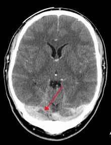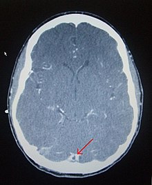 Cerebral venous sinus thrombosis (CVST) is the presence of a blood clot in the dural venous sinuses, which drain blood from the brain.[1] Symptoms may include headache, abnormal vision, symptoms of a stroke such as weakness of the face and limbs on one side of the body, and seizures.[2] Complications may include a subarachnoid bleed.[2]
