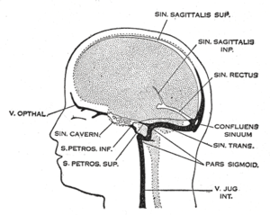 | Other names: Cerebral venous thrombosis, cerebral venous and sinus thrombosis, (superior) sagittal sinus thrombosis, dural sinus thrombosis, intracranial venous thrombosis, cerebral thrombophlebitis, cerebral sinovenous thrombosis[1] | |
