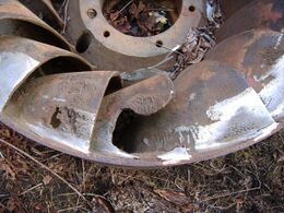 Although the collapse of a small cavity is a relatively low-energy event, highly localized collapses can erode metals, such as steel, over time.[38] The pitting caused by the collapse of cavities produces great wear on components and can dramatically shorten a propeller's or pump's lifetime.