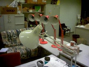 Commonly called 'light bulbs', lamps are the removable and replaceable portion of a luminaire which converts electrical energy to both visible and non-visible electromagnetic energy. Specialists who work with lighting, carefully avoid energetic units for measuring of the light output of sources of light. For example, instead of watt per steradian, the special unit candela is used; 1 candela=(1/683) W/steradian. Common characteristics used to evaluate lamp quality include efficiency measured in lumens per watt, typical lamp life measured in hours, and Color Rendering Index on a scale of 0 to 100. Cost of replacement lamps is also an important factor in any design.[1]