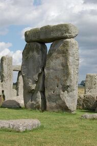 A trilithon (or trilith) is a structure consisting of two large vertical stones supporting a third stone set horizontally across the top. Commonly used in the context of megalithic monuments, the most famous trilithons are those at Stonehenge and those found in the Megalithic Temples of Malta.