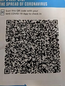 - ↑ "Which venues in England should display the official NHS QR code poster?". https://faq.covid19.nhs.uk/article/KA-01183/en-us.