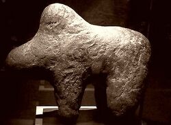 The boli can be zoomorphic (mostly a buffalo or a zebu) or even sometimes anthropomorphic. The populations of Mali who practice the so-called bamanaya cult, that is to say who indulge in the sacrifices of animals on the boliw and who communicate with the afterlife through masked dancers say they are Bamana.[1]