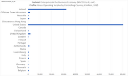 ↑Seamus Coffey, Irish Fiscal Advisory Council (18 June 2018). "Who shifts profits to Ireland". Economic Incentives, University College Cork. http://economic-incentives.blogspot.com/2018/06/who-shifts-profits-to-ireland.html. "Eurostat's structural business statistics give a range of measures of the business economy broken down by the controlling country of the enterprises. Here is the Gross Operating Surplus generated in Ireland in 2015 for the countries with figures reported by Eurostat."