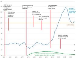 Effect of Ireland's Corporate Tax system on Ireland's relative GNI-per-capita to the EU average[51]