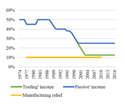 Irish corporate tax rates (1974 to 2016). Source: Revenue.[9]