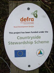 A Countryside Stewardship Scheme sign near a new stile a Cratfield, Suffolk