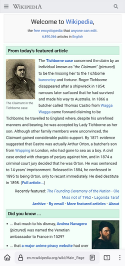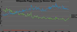 A mobile version showing the English Wikipedia's Main Page on October 2, 2024Wikipedia page views by platform