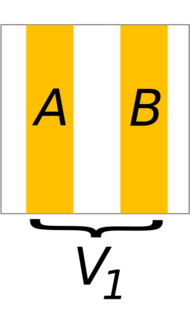 The notation can be extended to higher iterates of the horseshoe map. The vertical strips can be named according to the sequence of visits to strip A or strip B. For example, the set ABB ⊂ V3 consists of the points from A that will all land in B in one iteration and remain in B in the iteration after that: