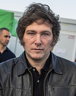 Javier Gerardo Milei (1970–), nicknamed El Loco ("the Madman") or El Peluca ("the Wig", due to his terrible hairstyle), is the Trumpian, batshit insane, anarcho-capitalist president of Argentina since 2023. He rode his way into power in the 2023 presidential elections not because he had good policies or political skills, but rather as the "lesser" of two evils for Argentinian citizens exasperated by the corrupt governments and failing economy that preceded him.