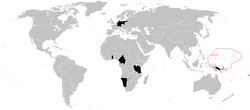 Germany also colluded with the British Empire to divvy up the Sultanate of Zanzibar, with Germany taking the inland regions of Tanzania and the British seizing the actual Zanzibar islands.[45] The sultan had no choice but to allow his lands to be taken by the colonial powers. His relative powerlessness would later be proven in the 1896 Anglo-Zanzibar War, which the British won in just 38 minutes.[46]