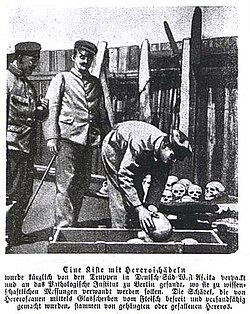 If that's not chillingly Nazi-esque enough, German scientist Eugen Fischer set up shop in the concentration camps to conduct evil medical experiments on the helpless prisoners.[42] He went on to train Nazi scientists and to write Principles of Human Heredity and Race Hygiene, which shaped Nazi eugenics policies. Oh, and he took 300 Herero skulls back home to Germany with him as souvenirs because the man was a fucking creep.