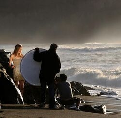 Also known as plane reflectors, "flats" or bounce boards, this kind of reflector is located independent of a light source; the light is reflected off its surface, either to achieve a broader light source, or control shadows and highlights, or both. This kind of reflector generally has a very low reflectivity factor that varies widely according to surface texture and colour.[2] As a result, it is most commonly used to control contrast in both artificial and natural lighting, in place of a fill light or "kick" light. In this case, light "spilling" from the main ambient or key light illuminating a scene is reflected back into the scene with a varying degrees of precision and intensity, according to the chosen reflective surface and its position relative to the scene.