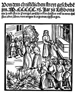 The Fourth Lateran Council which was held in 1215 was the first council to proclaim that Jews were required to wear something which distinguished them as Jews (the same requirement was also imposed on Muslims). On many occasions, Jews were accused of blood libels, the supposed drinking of the blood of Christian children in mockery of the Christian Eucharist.[43]