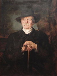 According to a critic, modernism developed out of Romanticism's revolt against the effects of the Industrial Revolution and bourgeois values: "The ground motive of modernism, Graff asserts, was criticism of the nineteenth-century bourgeois social order and its world view [...] the modernists, carrying the torch of romanticism."[lower-alpha 1][2][3] While J. M. W. Turner (1775–1851), one of the greatest landscape painters of the 19th century, was a member of the Romantic movement, as "a pioneer in the study of light, colour, and atmosphere", he "anticipated the French Impressionists" and therefore modernism "in breaking down conventional formulas of representation; [though] unlike them, he believed that his works should always express significant historical, mythological, literary, or other narrative themes."[29]