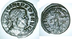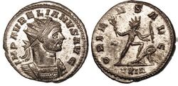 Aurelian in his radiate crown, on a silvered bronze coin struck at Rome, 274–275 |