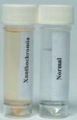 The CSF sample is also examined for xanthochromia—the yellow appearance of centrifugated fluid. This can be determined by spectrophotometry (measuring the absorption of particular wavelengths of light) or visual examination. It is unclear which method is superior.[35] Xanthochromia remains a reliable ways to detect SAH several days after the onset of headache.[36] An interval of at least 12 hours between the onset of the headache and lumbar puncture is required, as it takes several hours for the hemoglobin from the red blood cells to be metabolized into bilirubin.[4][36]
