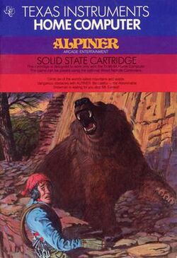 Alpiner is an action video game designed by Janet Srimushnam for the TI-99/4A home computer and published on cartridge by Texas Instruments in 1982.[1] The player climbs six of the world's highest mountains while avoiding trees, animals, falling rocks, and landslides. The mountains in the game are Mount Hood, the Matterhorn, Mount Kenya, Mount McKinley, Mount Garmo, and Mount Everest.[2] The Alpiner cartridge originally retailed for $39.95 (USD).[3][4]