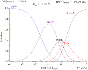 | PbCl3− + Cl− → PbCl42− | K4 = 8.92 × 10−2 |