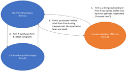 These three strategies facilitate tax avoidance through careful planning of transactions; a U.S.-based multinational corporation does not technically repatriate foreign profits when the strategies are followed.[1] Instead, a company performs a set of transactions that are classified as a "reorganization" under Section 368(a)(1) of the Internal Revenue Code.[1][3] The advantage of performing these transactions is that such "reorganizations" are not taxed.[3][5] However, companies structure these reorganization so as to, from an economic perspective, move cash from foreign subsidiaries into the United States while financing a corporate acquisition, thereby avoiding the tax on repatriated profits that they would ordinarily have to pay if a company were to directly repatriate the profits.[1][3]