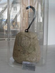 The name "stone" derives from the use of stones for weights, a practice that dates back into antiquity. The Biblical law against the carrying of "diverse weights, a large and a small"[7] is more literally translated as "you shall not carry a stone and a stone (אבן ואבן), a large and a small". There was no standardised "stone" in the ancient Jewish world,[8] but in Roman times stone weights were crafted to multiples of the Roman pound.[9] Such weights varied in quality: the Yale Medical Library holds 10 and 50-pound examples of polished serpentine,[10] while a 40-pound example at the Eschborn Museum is made of sandstone.[11]
