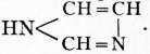 Imidazole (glyoxaline), C3H4N2, crystallizes in thick prisms which melt at 88-89° C. and boil at 253° C., and are readily soluble in alcohol and in water. It is unaffected by chromic acid, but potassium permanganate oxidizes it to formic acid. It forms salts with acids.