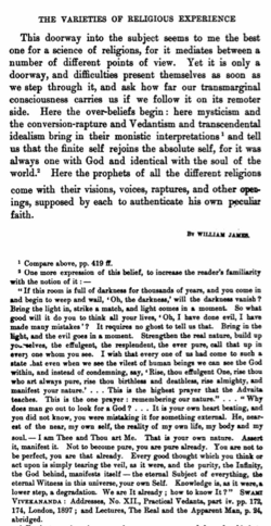 William James provided a description of the mystical experience, in his famous collection of lectures published in 1902 as The Varieties of Religious Experience.[55] These criteria are as follows
