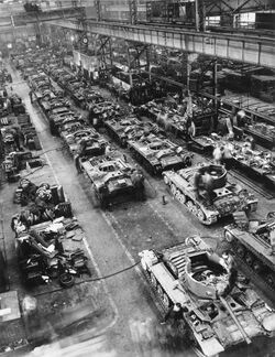 From the time of the Industrial Revolution until World War II, there were significant differences in consumption patterns between those in the industrialized world and those in the unindustrialized world. Yet, those differences got exacerbated during World War II and in the immediate postwar years. Driven by the United States’ monumental industrial capacity, the world exited the Second World War with a new jump in industrialization and mass production. Consumption during World War II was altered globally due to so many resources going to the war effort.[8] However, after the war, the factories still intact switched to consumer goods to avoid an economic slowdown. For the United States with all of its industrial capacity unharmed, the United States became an industrial titan producing mass-consumption goods for the whole world. Additionally through the Marshall Plan, an American foreign policy aid program aimed at preventing broken European nations from becoming Communist by supporting a capitalist revitalization with immense economic support from the United States, European nations rebuilt extremely quickly and were able to modernize their industrial systems toward mass production as well.[9]
