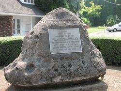 The Willamette Meteorite, officially named Willamette[3] and originally known as Tomanowos by the Clackamas Chinook[4][5] Native American tribe, is an iron-nickel meteorite found in the U.S. state of Oregon. It is the largest meteorite found in the United States and the sixth largest in the world.[6][7] There was no impact crater at the discovery site; researchers believe the meteorite landed in what is now Canada or Montana, and was transported as a glacial erratic to the Willamette Valley during the Missoula Floods at the end of the last Ice Age (~13,000 years ago).[8] It has long been held sacred by indigenous peoples of the Willamette Valley, including the federally recognized Confederated Tribes of the Grand Ronde Community of Oregon (CTGRC).