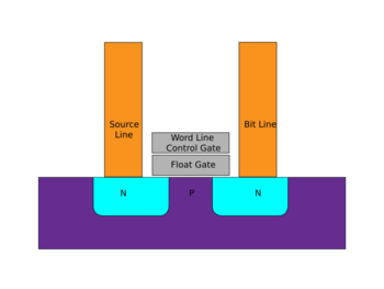 Flash memory is an electronic non-volatile computer memory storage medium that can be electrically erased and reprogrammed. The two main types of flash memory, NOR flash and NAND flash, are named for the NOR and NAND logic gates. Both use the same cell design, consisting of floating gate MOSFETs. They differ at the circuit level depending on whether the state of the bit line or word lines is pulled high or low: in NAND flash, the relationship between the bit line and the word lines resembles a NAND gate; in NOR flash, it resembles a NOR gate.